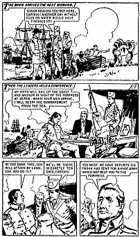 MC CANN, JERRYThe Ships arrived . . . (pen/ink/) in WORLD AROUND US #10? (c) 1959