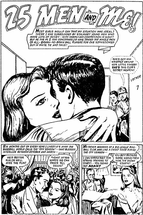 Romance: 25 Men and Me (pen/ink/) in unknown title (c) 1950s ACG
