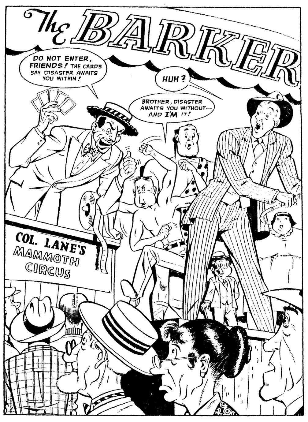 BARKER, THE (pen/ink/) in THE BARKER (c) c1950 Quality Comics