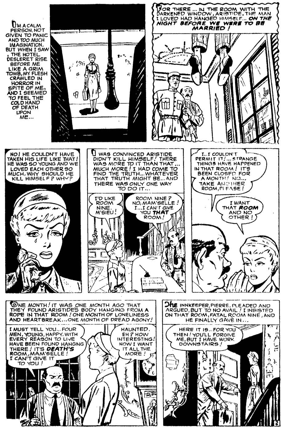 Horror (pen/ink/) [by Ben Brown? and San Gantz?] in SUSPENSE COMICS (c) 1949 Holyoke