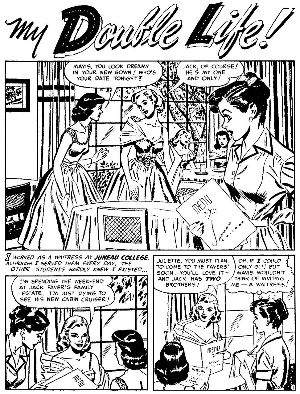 UNCREDITED ARTRomance: My Double Life (pen/) in unknown title (c) 1952 Ziff-Davis
