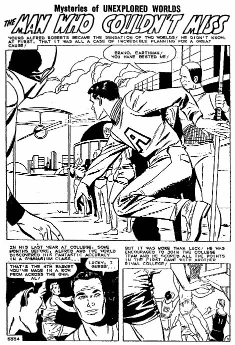 Occult: The Man Who Couldn't Miss . . . (pen/ink/) in MYSTERY OF UNEXPLORED WORLDS (c) c1959 Charlton