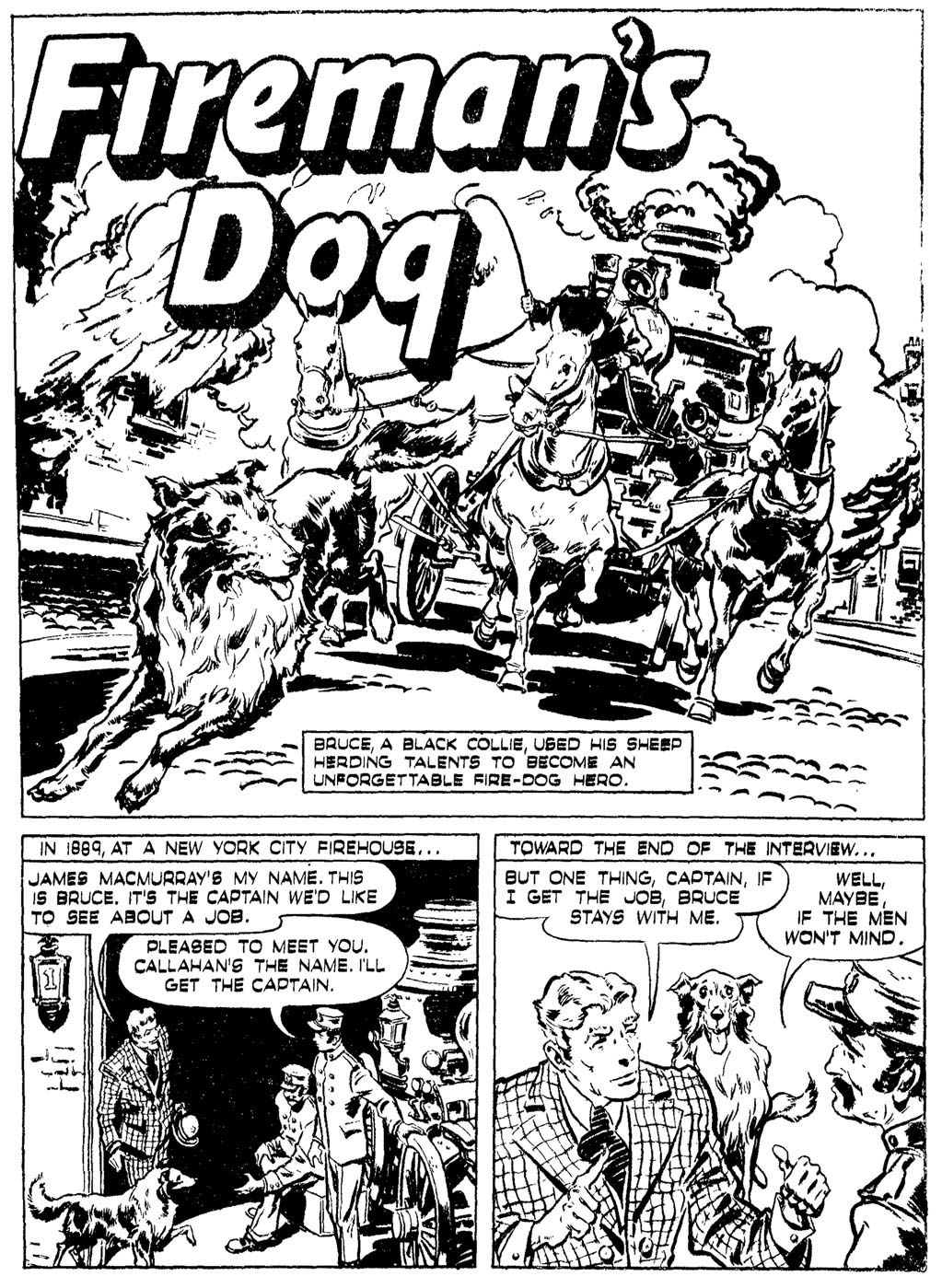 Non-fiction: Fireman's Dog (pen/ink/) in TRUE COMICS #52 (c) 1946 Parents Institute