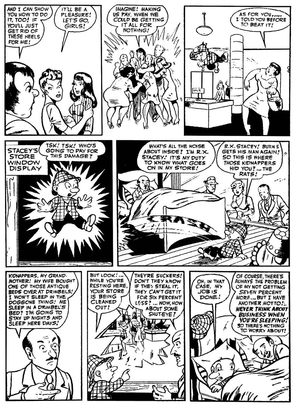FLATFOOT BURNS (pen/) in POLICE COMICS #39 [inks by Virginia Drury? or Janice Valleau?] (c) 1945 Quality