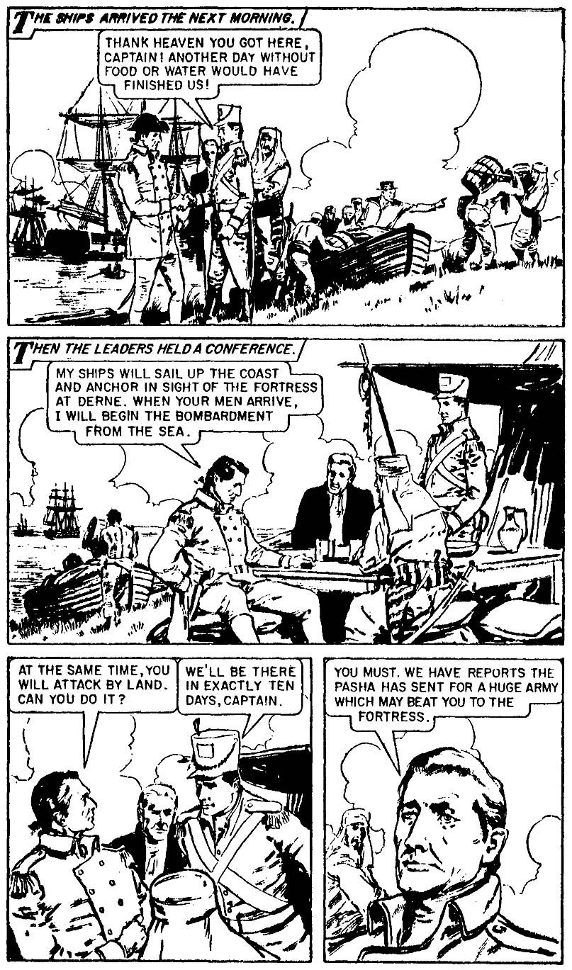 MC CANN, JERRYThe Ships arrived . . . (pen/ink/) in WORLD AROUND US #10? (c) 1959