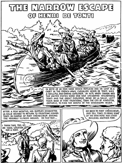 SCHAARE, C. R.Non-fiction: The Narrow Escape of Henri de Tonti (pen/ink/) in TRUE COMICS #26 (c) 1943 Parents Institute